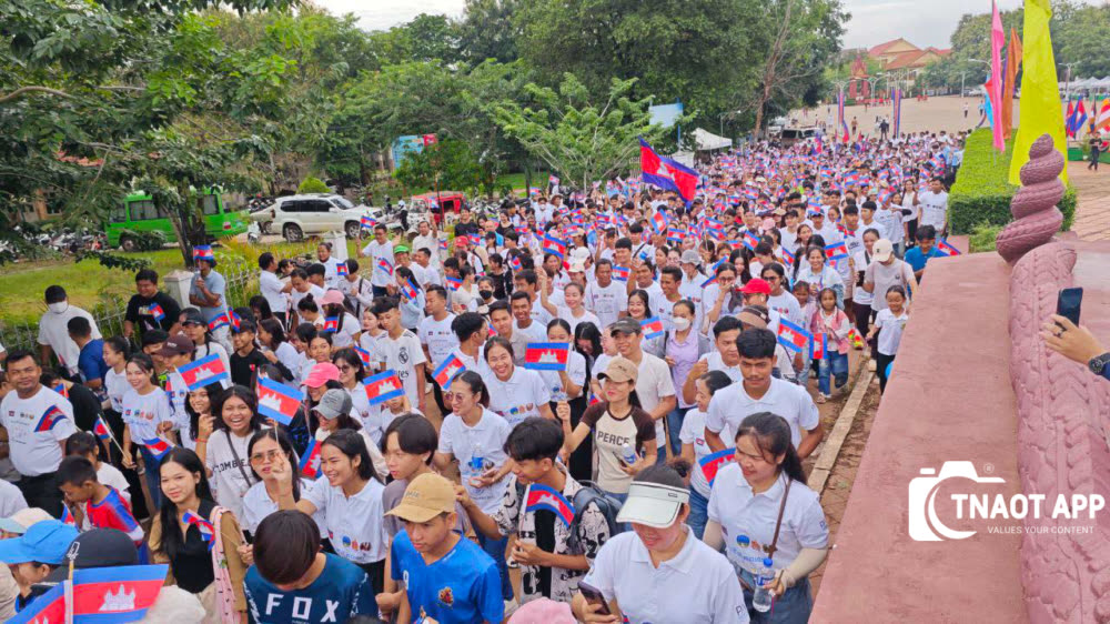 នាទីរួមខេត្តកំពង់ចាម ពលរដ្ឋ រួមនិងព្រះសង្ឃជិតមួយពាន់នាក់ ចូលរួមទិវារដើរដើម្បីសន្តិភាព