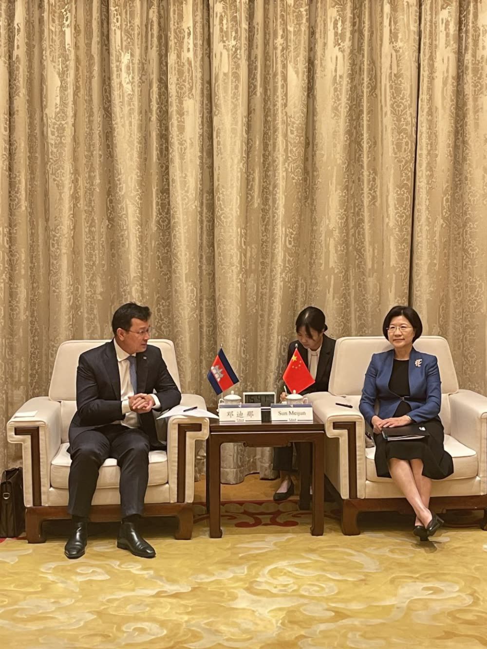 ក្នុងឱកាសនោះដែរ ឯកឧត្តមរដ្ឋមន្ត្រីក៏បានជួបសម្តែងការគួរសមជាមួយ លោកជំទាវ SUN Meijun រដ្ឋមន្ត្រី អគ្គរដ្ឋបាលគយនៃសាធារណរដ្ឋប្រជាមានិតចិន (GACC) និងជួបប្រជុំទ្វេភាគីប្រកបដោយផ្លែផ្កាជាមួយ ឯកឧត្តម ZHAO Zenglian អនុរដ្ឋមន្ត្រី GACC ដើម្បីពិភាក្សាអំពីការពង្រឹងកិច្ចសហប្រតិបត្តិការក្នុងក្របខ័ណ្ឌអនាម័យ និងភូតគាម អនាម័យ(SPS) រវាងប្រទេសទាំងពីរ សំដៅពន្លឿនការបើកទីផ្សារចិនដល់ផលិតផលកសិផលកម្ពុជាបន្ថែមទៀត ក៏ដូចជា ការសម្រួលនីតិវិធីនាំចេញទៅប្រទេសចិនស្របតាមការទន្ទឹងរង់ចាំរបស់កសិករ និងវិស័យឯកជនកម្ពុជា។