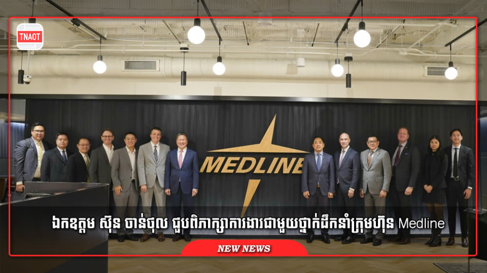 ឯកឧត្តម ស៊ុន ចាន់ថុល ឧបនាយករដ្ឋមន្ត្រី អនុប្រធានទី១ ក្រុមប្រឹក្សាអភិវឌ្ឍន៍កម្ពុជា បានដឹកនាំគណៈប្រតិភូកម្ពុជា ចូលជួបសម្តែងការគួរសម និងពិភាក្សាការងារជាមួយ លោក Rob Calia អនុប្រធានក្រុមហ៊ុន និងជាប្រធានផ្នែកកិច្ចការជាមួយរដ្ឋាភិបាល របស់ក្រុមហ៊ុន Medline ដែលជាក្រុមហ៊ុនឯកជនដ៏ធំបំផុតមួយរបស់សហរដ្ឋអាម៉េរិក មានឯកទេសក្នុងការផលិត និងចែកចាយបរិក្ខារពេទ្យ និងផលិតផលថែទាំសុខភាពជាង ៣៣៥ពាន់មុខ ព្រមទាំងជាអ្នកផ្តល់ដំណោះស្រាយខ្សែចង្វាក់ផ្គត់ផ្គង់ ជូនស្ថាប័នថែទាំសុខភាពទូទាំងពិភពលោកផងដែរ។