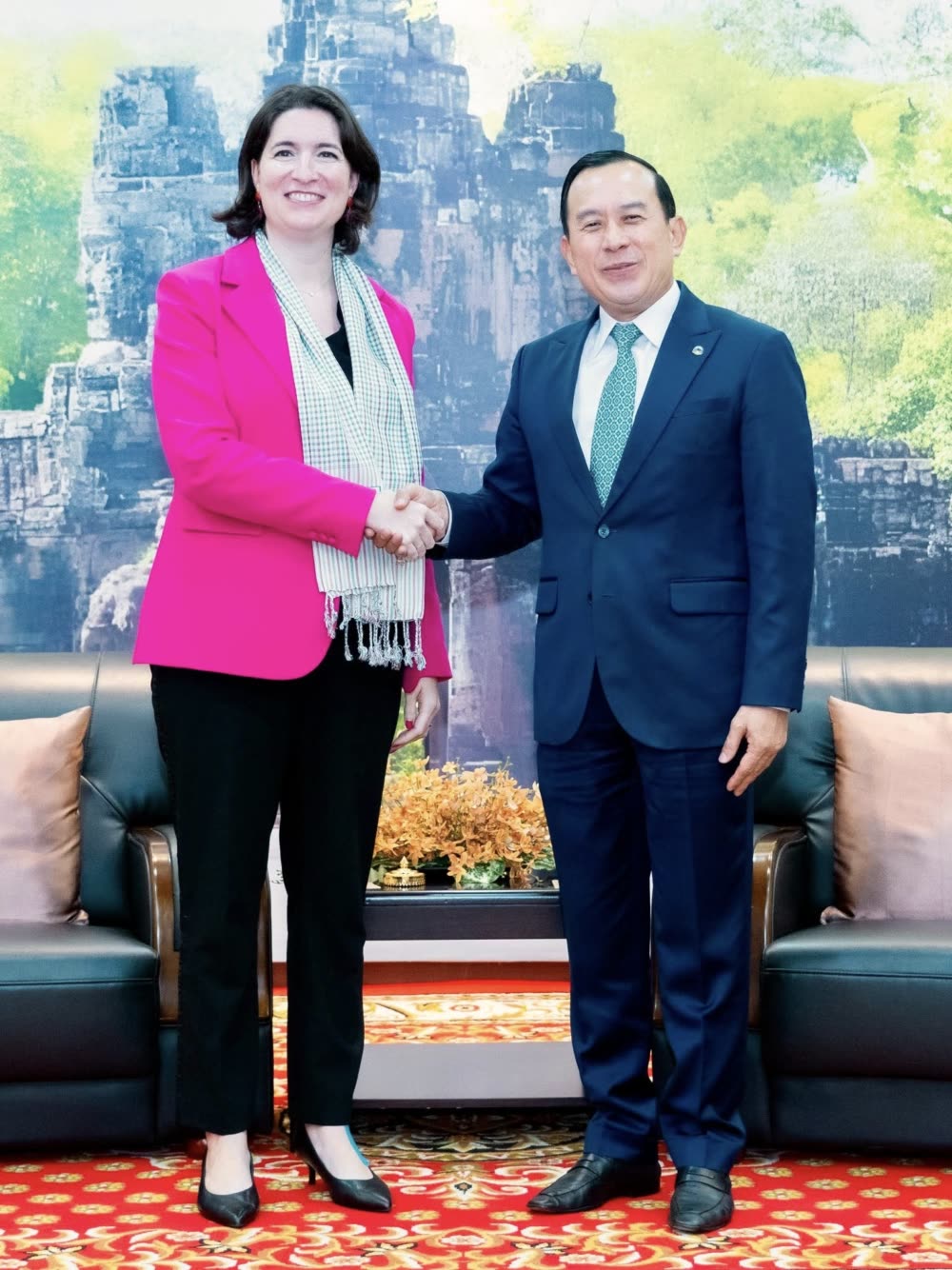 ឯកឧត្តម ហួត ហាក់ រដ្ឋមន្ត្រីក្រសួងទេសចរណ៍ អនុញ្ញាតជូនលោកស្រី Tania Meyer នាយិកាធនាគារពិភពលោកប្រចាំកម្ពុជា និងសហការី ចូលជួបសម្តែងការគួរសម រាយការណ៍ពីសកម្មភាពការងារនៅកម្ពុជាកន្លងមក និងពិភាក្សាអំពីការបង្កើតកិច្ចសហប្រតិបត្តិការក្នុងវិស័យទេសចរណ៍ជាមួយក្រសួងទេសចរណ៍ ដែលមានគោលដៅជំរុញការអភិវឌ្ឍវិស័យទេសចរណ៍សហគមន៍ និងអេកូទេសចរណ៍ ព្រមទាំងការលើកស្ទួយជីវភាពប្រជាជនក្នុងសហគមន៍ នៅទីស្តីការក្រសួង។
