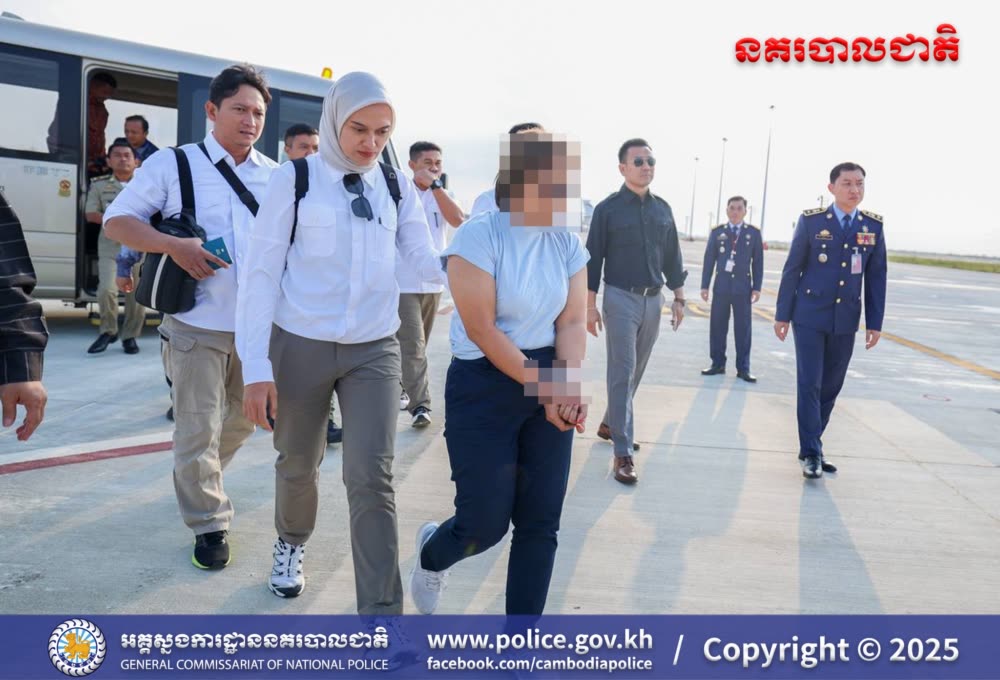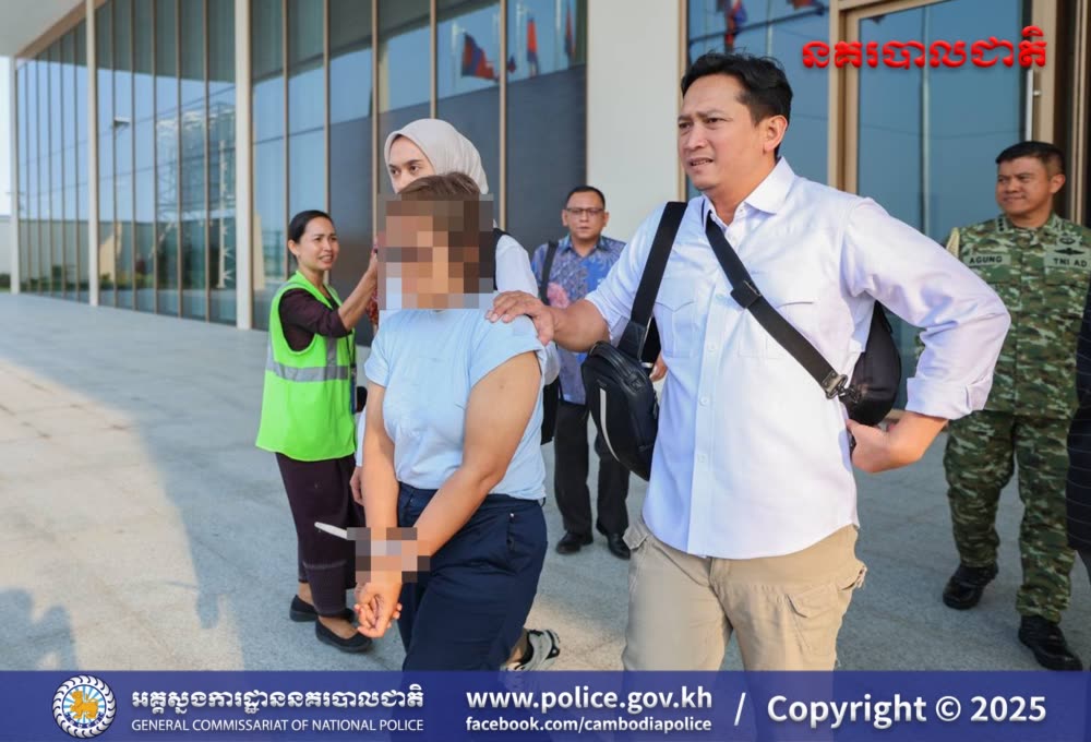 កម្លាំងនគរបាលជំនាញ នៃអគ្គស្នងការដ្ឋាននគរបាលជាតិកម្ពុជា រួមជាមួយនឹងកម្លាំងនគរបាលជំនាញឥណ្ឌូណេស៊ី និងស្នងការដ្ឋាននគរបាលខេត្តព្រះសីហនុ តាមការផ្តល់ព័ត៌មានពីនគរបាលឥណ្ឌូណេស៊ី បានឈានដល់ការធ្វើការឃាត់ខ្លួន និងបញ្ជូនមុខសញ្ញានិវេទន៍ក្រហមរបស់នគរបាលអន្តរជាតិ ពាក់ព័ន្ធបទល្មើសជួញដូរមនុស្ស និងគ្រឿងញៀន ស្ត្រីជនជាតិឥណ្ឌូណេស៊ីម្នាក់ ទៅកាន់ប្រទេសដើមវិញ កាលពីថ្ងៃទី០២ ខែធ្នូ ឆ្នាំ២០២៥ នេះ។
