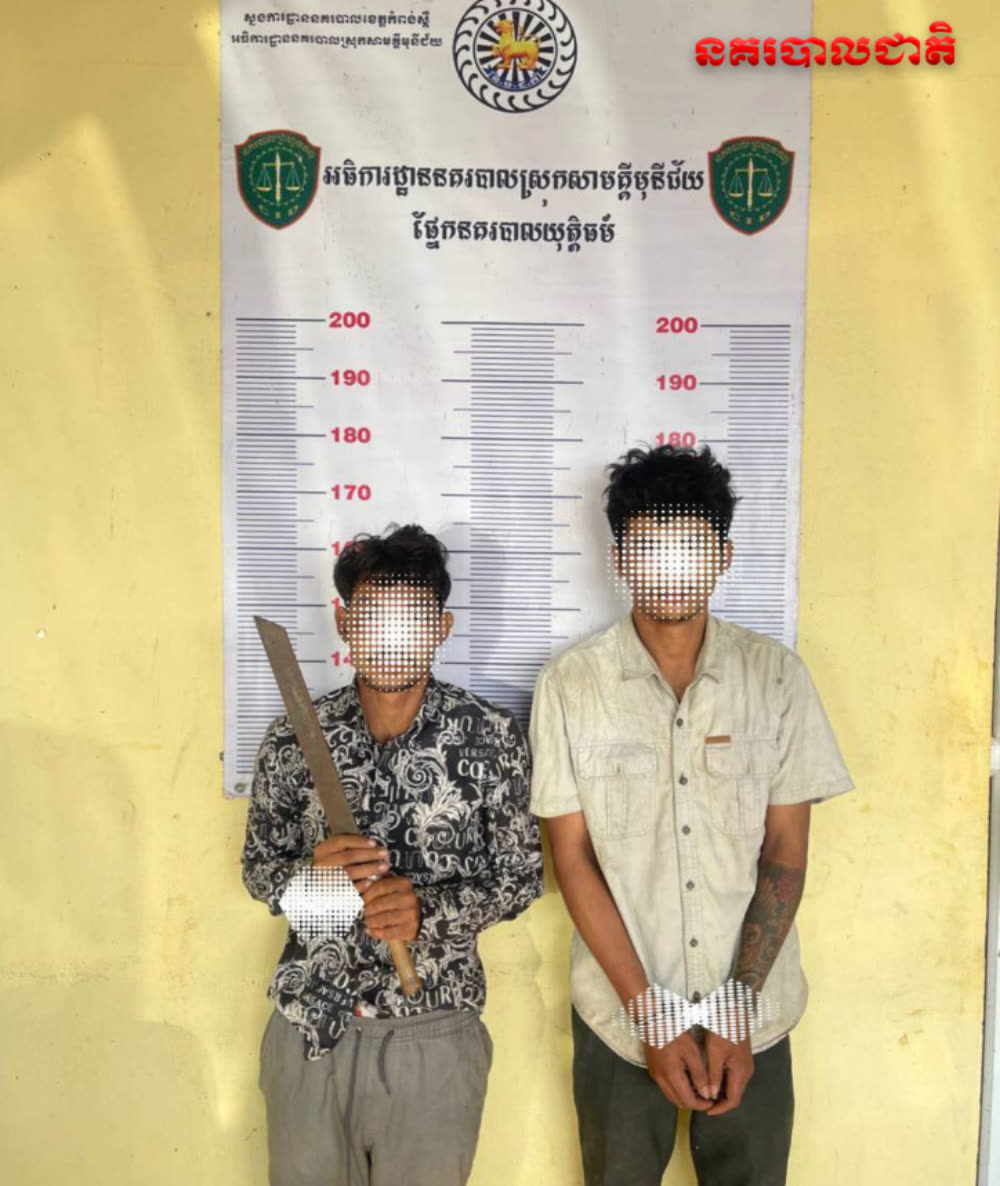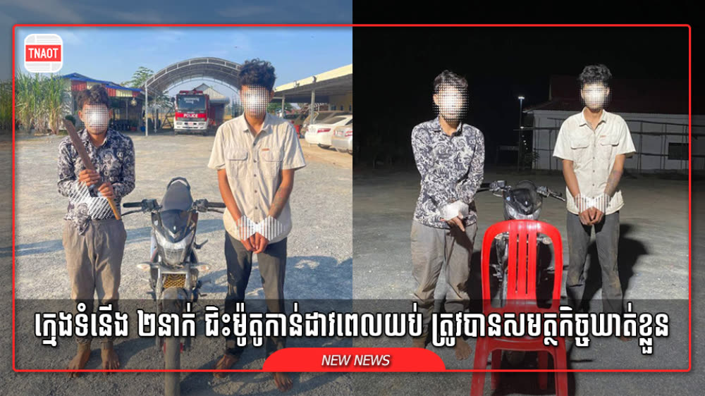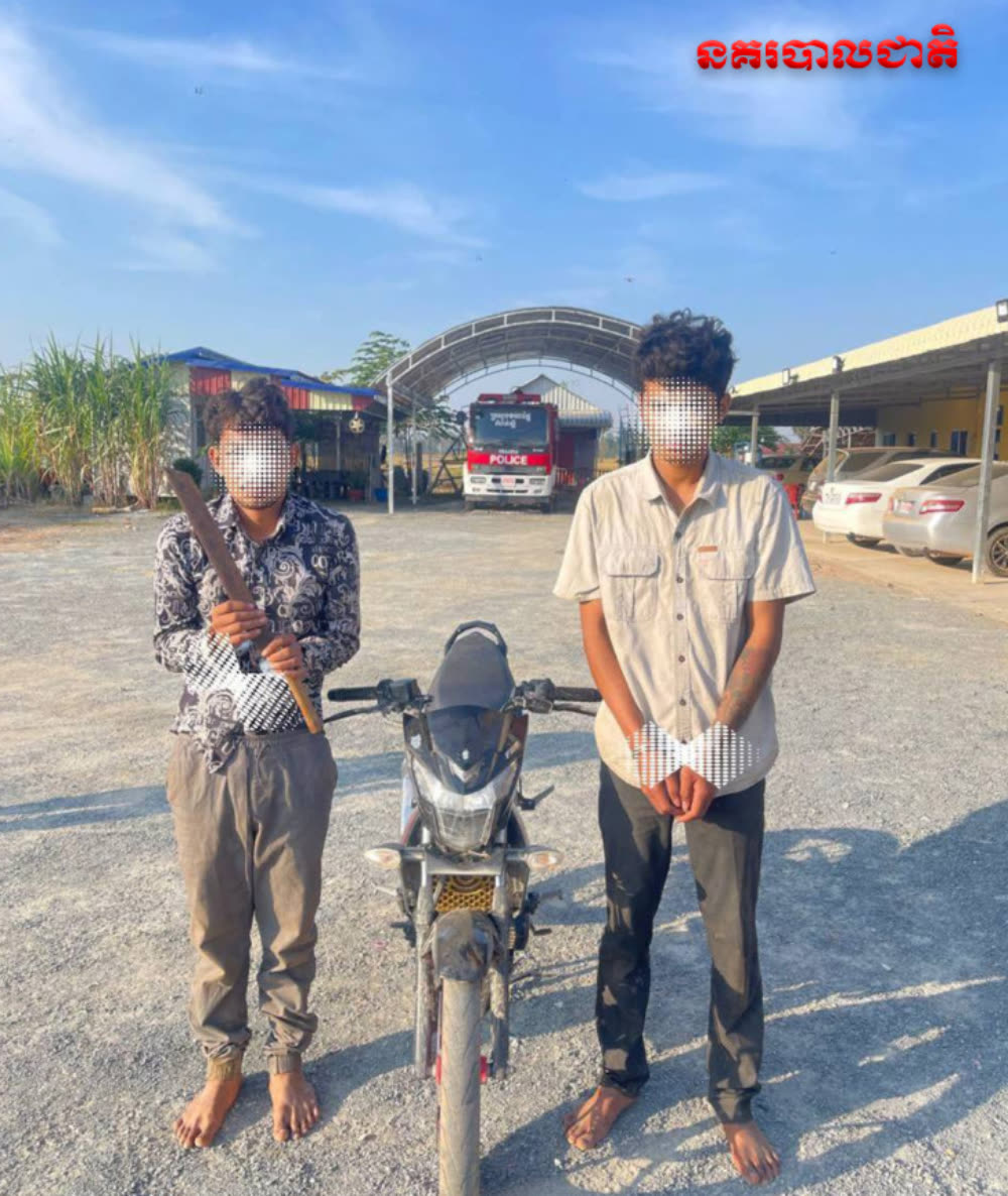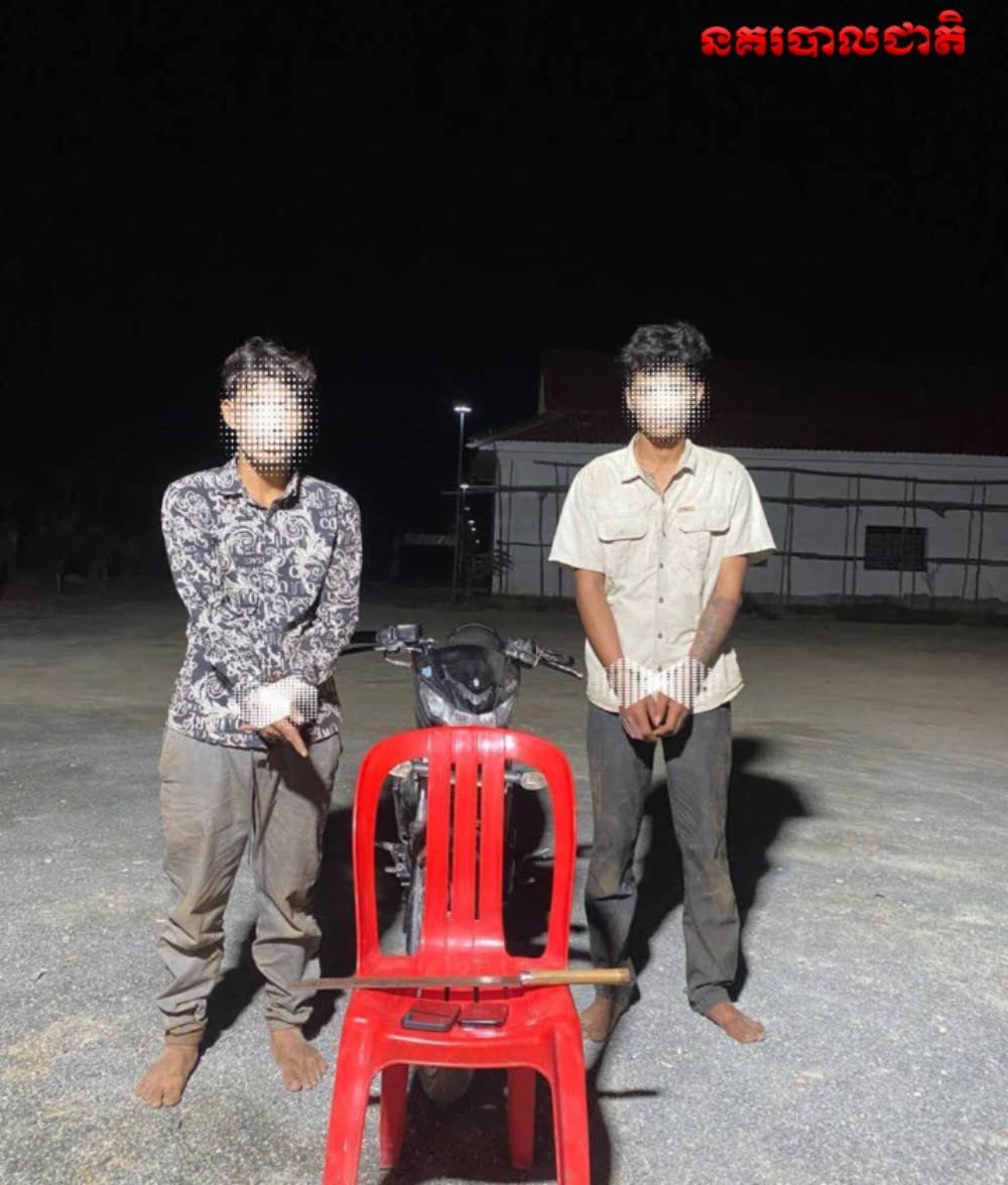 សមត្ថកិច្ចឃាត់ខ្លួនក្មេងទំនើង ២នាក់ ធ្វេីសកម្មភាពជិះម៉ូតូកាន់ដាវពេលយប់