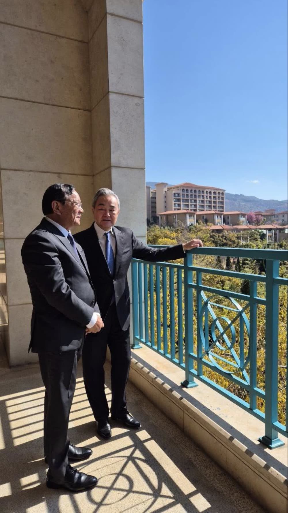 ឆ្លៀតឱកាសបន្តិចក្រោយពីកិច្ចប្រជុំទ្វេភាគី ឯកឧត្តម ប្រាក់ សុខុន និងលោក វ៉ាង យី បានឈរមើលទេសភាពបឹង Fuxian ជាមួយគ្នា ដោយឯកឧត្តម ប្រាក់ សុខុន លើកឡើថា៖«ជើងមេឃដ៏ស្ងប់ស្ងាត់នេះរំលឹកយើងថា សន្តិភាពគឺជាការទទួលខុសត្រូវរួមគ្នា កសាងឡើងតាមរយៈការជឿទុកចិត្ត និងការគោរពគ្នាទៅវិញទៅមក ព្រមទាំងការប្តេជ្ញាចិត្តរួមគ្នាក្នុងការរួមរស់ដោយសន្តិភាព និងសុខដុមរមនា»៕