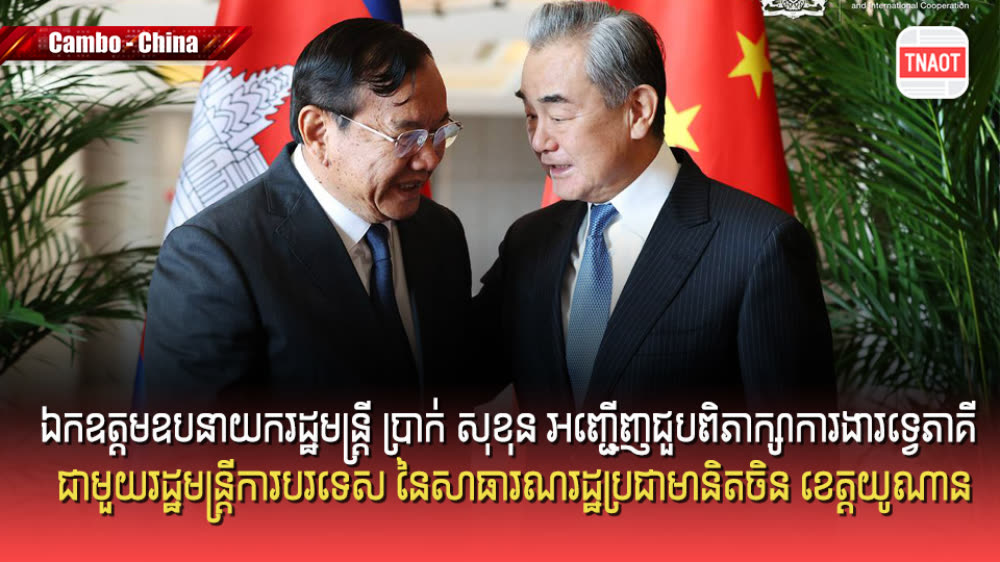 ឯកឧត្តម ប្រាក់ សុខុន ឧបនាយករដ្ឋមន្ត្រី រដ្ឋមន្ត្រីការបរទេស និងសហប្រតិបត្តិការអន្តរជាតិ បានអញ្ជើញជួបពិភាក្សាការងារទ្វេភាគីជាមួយ ឯកឧត្តម វ៉ាង យី រដ្ឋមន្រ្តីការបរទេស នៃសាធារណរដ្ឋប្រជាមានិតចិន ខេត្តយូណាន សាធារណរដ្ឋប្រជាមានិតចិន។